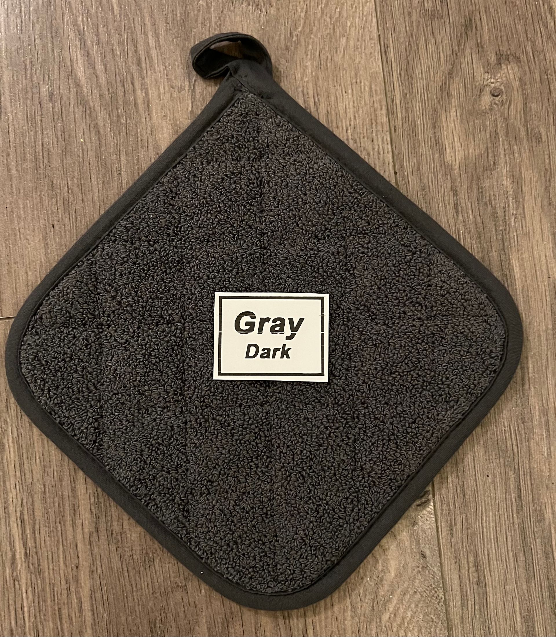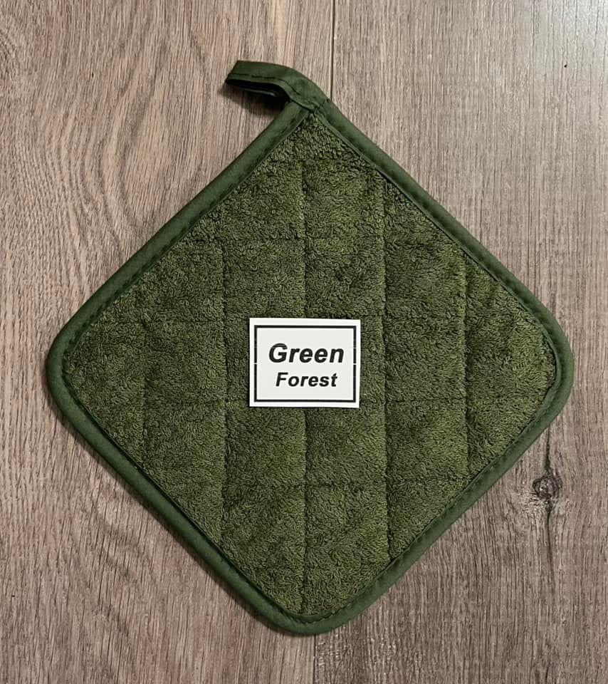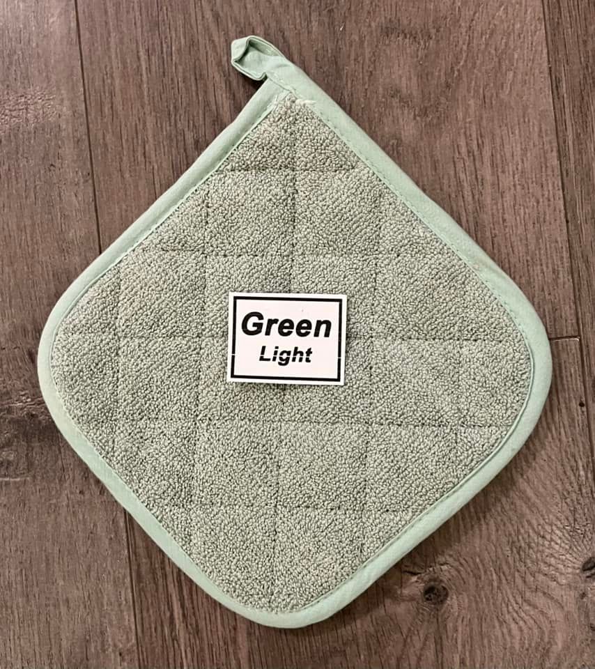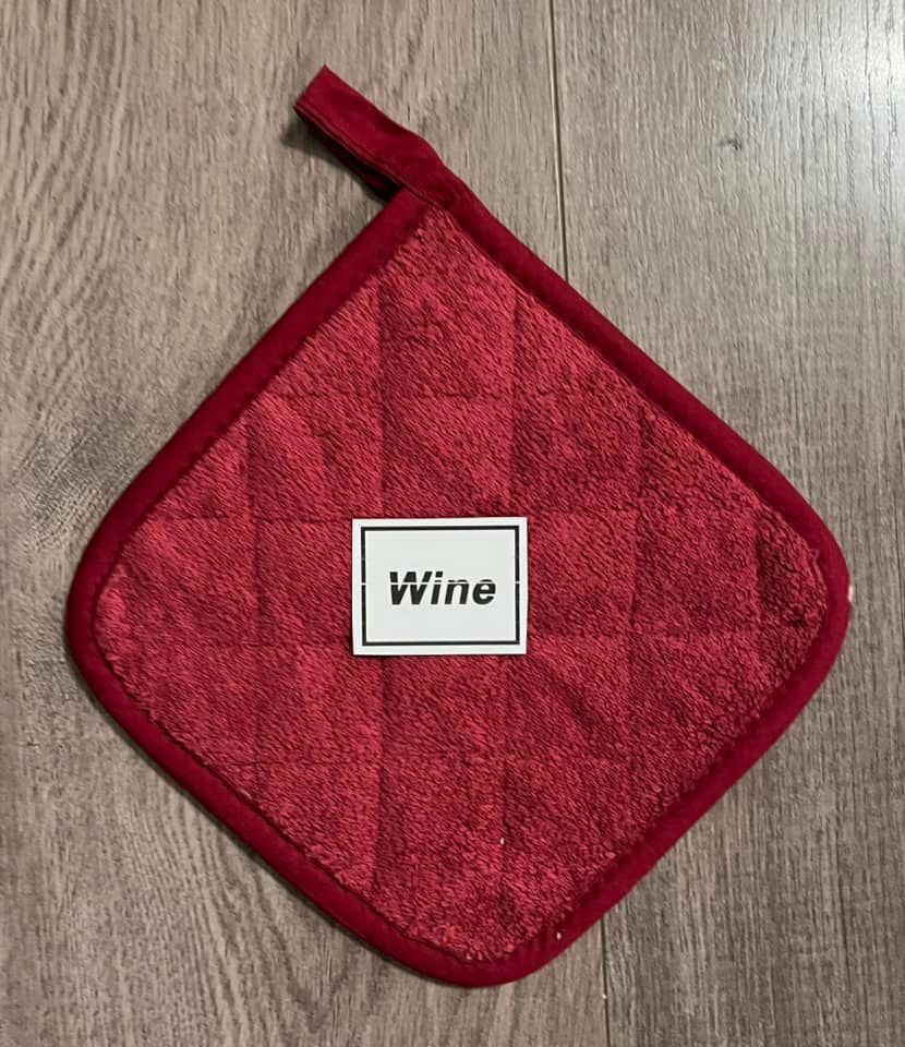 All towels will come complete with hot pad & button to keep towel from slipping off oven door handle)