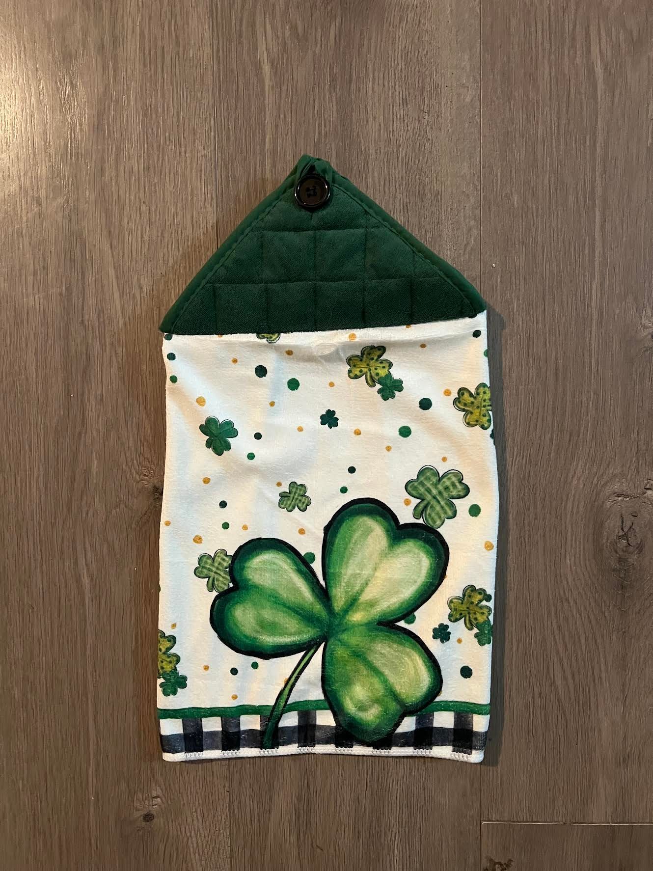 Towels are PLUSH, SOFT, THICK & high quality material with designs you will be proud of. All towels will come complete with hot pad & button to keep towel from slipping off oven door handle)