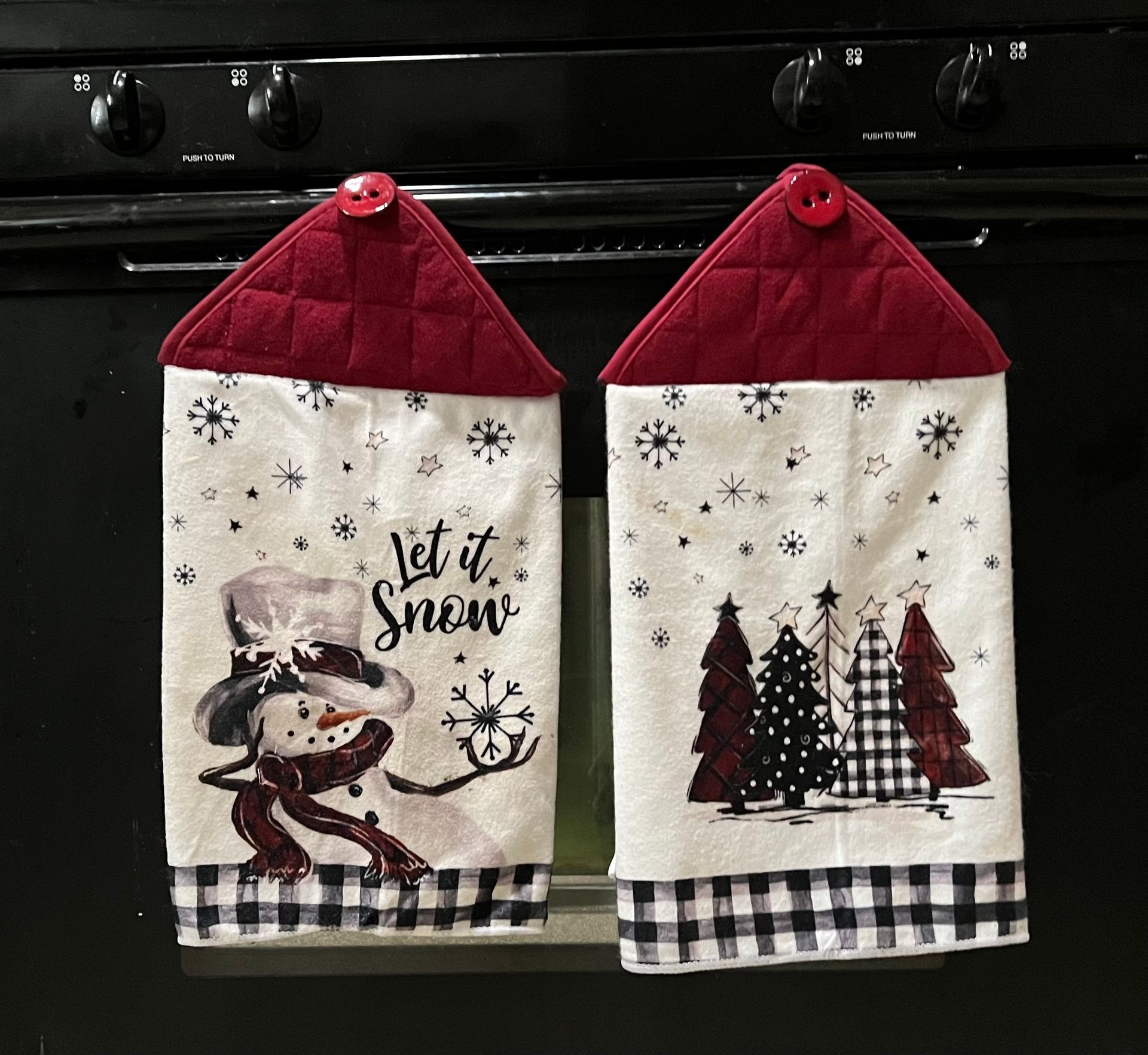 Towels are PLUSH, SOFT, THICK & high quality material with designs you will be proud of. All towels will come complete with hot pad & button to keep towel from slipping off oven door handle)